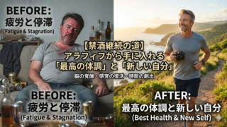 【禁酒で人生の第2幕を】アラフィフから手に入れる「最高の体調」と「新しい自分」へのガイド。長年の飲酒が脳や嗅覚、免疫力(亜鉛)に与える影響を解説し、断酒で取り戻せる驚きの身体能力や外見の変化、時間の創出について詳しく紹介します。気になる離脱症状への安全な対処法も網羅。お酒に依存しないクリアな毎日で、プロフェッショナルとしての自信と健康を再獲得しましょう。今日から始まる再生の旅へ。