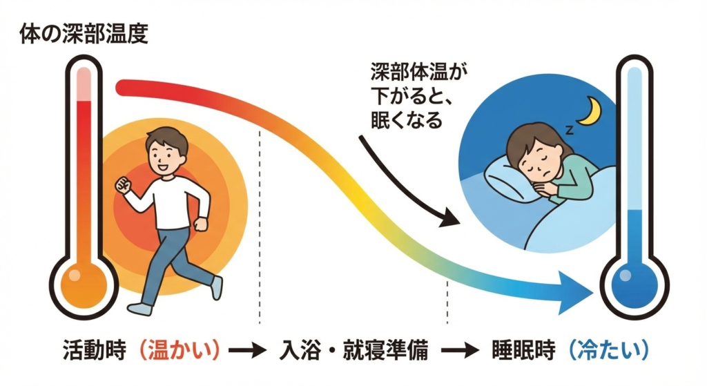 質の良い睡眠に入るためには、体の内部の温度(深部体温)が自然に下がることが不可欠です。